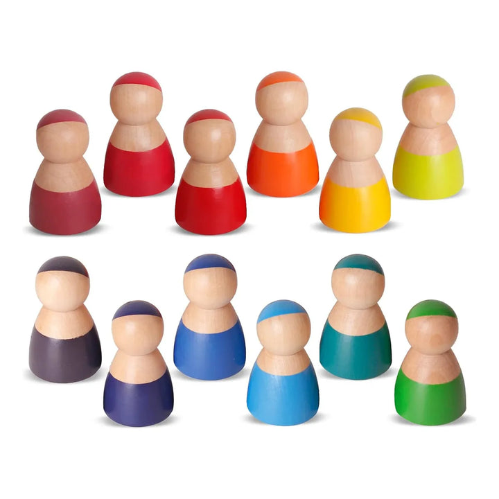 12 Muñecas De Madera Arcoíris Con Clavija Shierdu Juguete Educativo Creativo