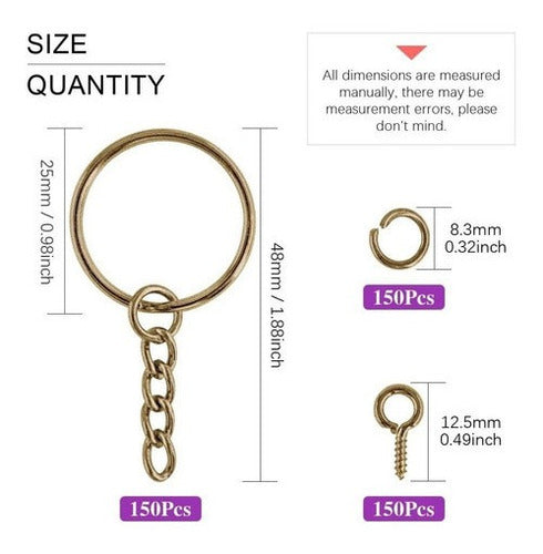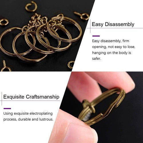 Aros Llavero Con Cadena 150 Piezas Juego de Llaveros de Bronce 1 Pulgada para Manualidades