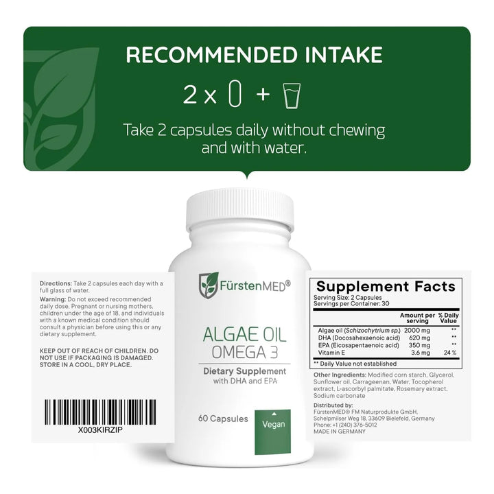 Aceite De Algas Omega 3 2000 Mg Vegano Apoyo Corazón Cerebro Articulaciones FürstenMED