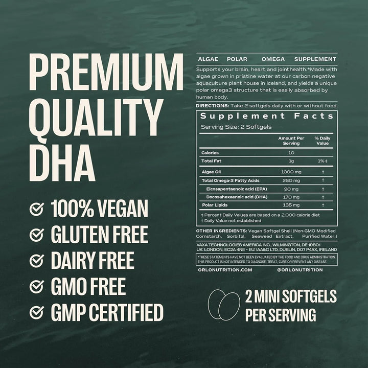 Aceite De Algas Omega 3 Dha Epa 60 Cápsulas Triple Potencia Orlo DHA Vegano