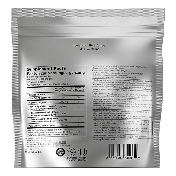 Orlo DHA utiliza un proceso de extracción único que preserva la integridad del DHA y EPA, asegurando que cada cápsula entregue la máxima potencia. Al tomar dos cápsulas al día, estos ácidos grasos esenciales se absorben rápidamente en tu torrente sanguíneo, apoyando desde tu función cognitiva hasta tu salud cardiovascular.