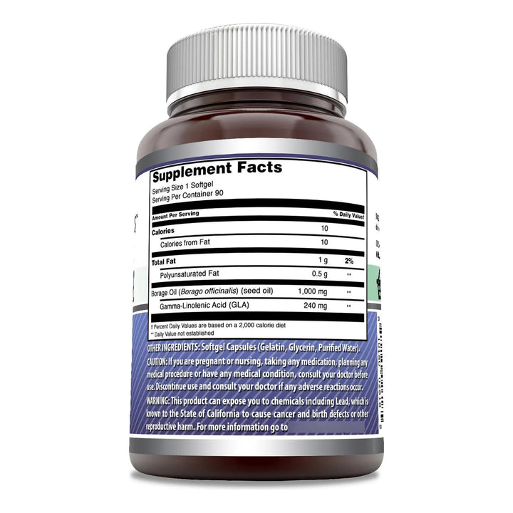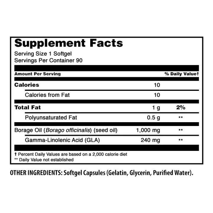 Aceite De Borraja 1000 Mg 90 Cápsulas Blandas Natural Sin OMG Sin Gluten