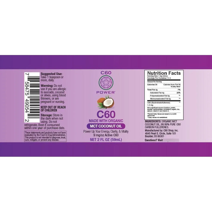 Aceite De Coco Orgánico Mct Con Fullerenos De Carbono 99.9 Energía Y Antienvejecimiento