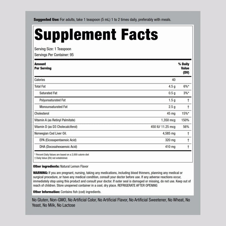 Aceite De Hígado De Bacalao Líquido 473 Ml Con EPA DHA Sabor Limón Engelvaer Norwegian
