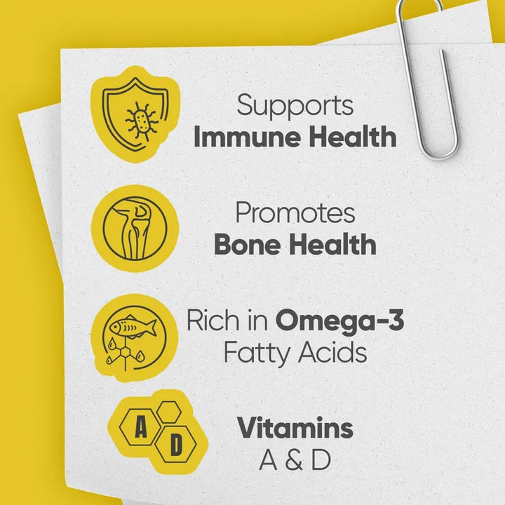 Nuestro aceite de hígado de bacalao funciona incorporando ácidos grasos Omega-3, que son vitales para la función cerebral. La vitamina D mejora la absorción de calcio, fortaleciendo huesos y dientes.