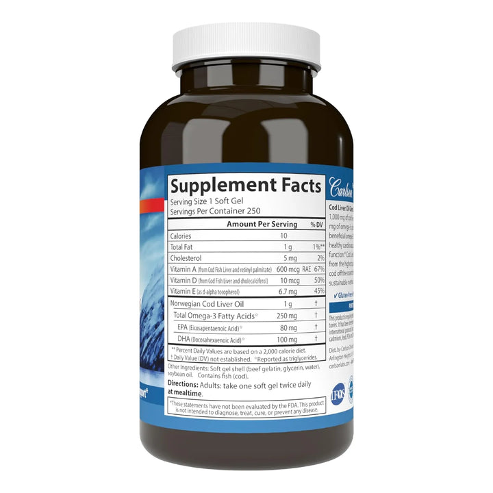 Aceite De Higado De Bacalao Super 1000 Mg Carlson 250 Capsulas Omega 3 Y Vitamina D3
