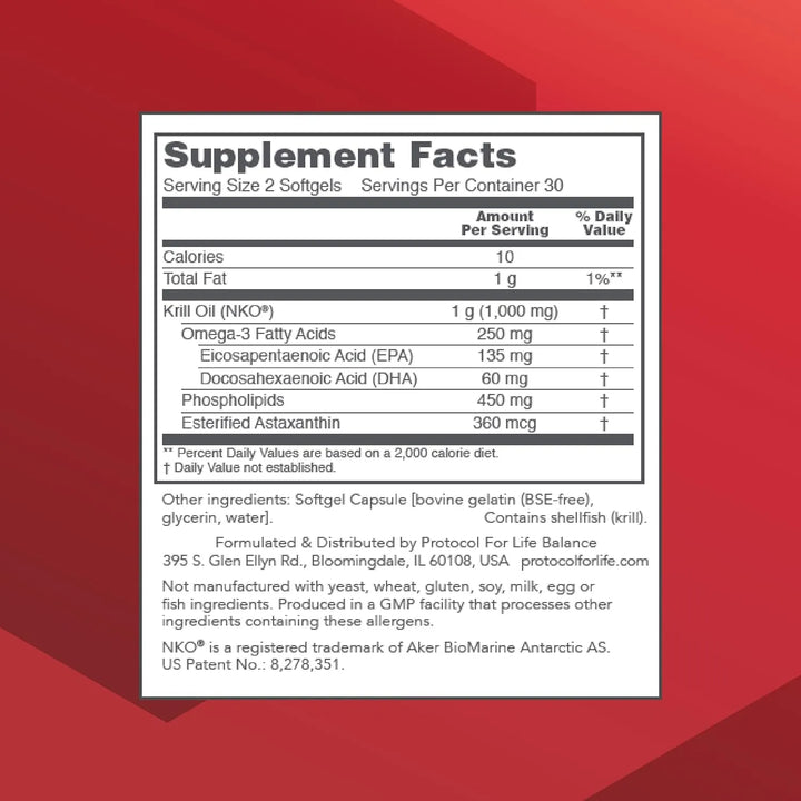 Aceite De Krill 1000 Mg DHA EPA Astaxantina Protocol For Life Balance Corazón Cerebro Articulaciones