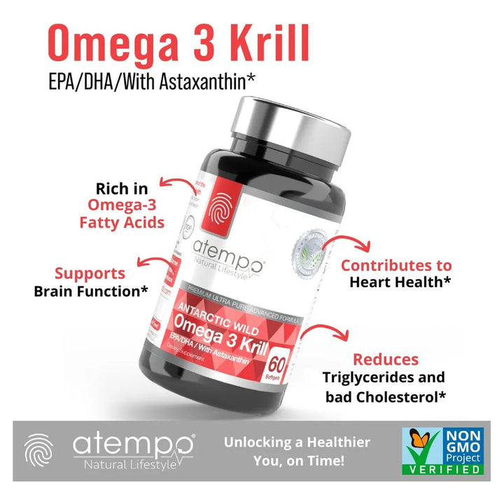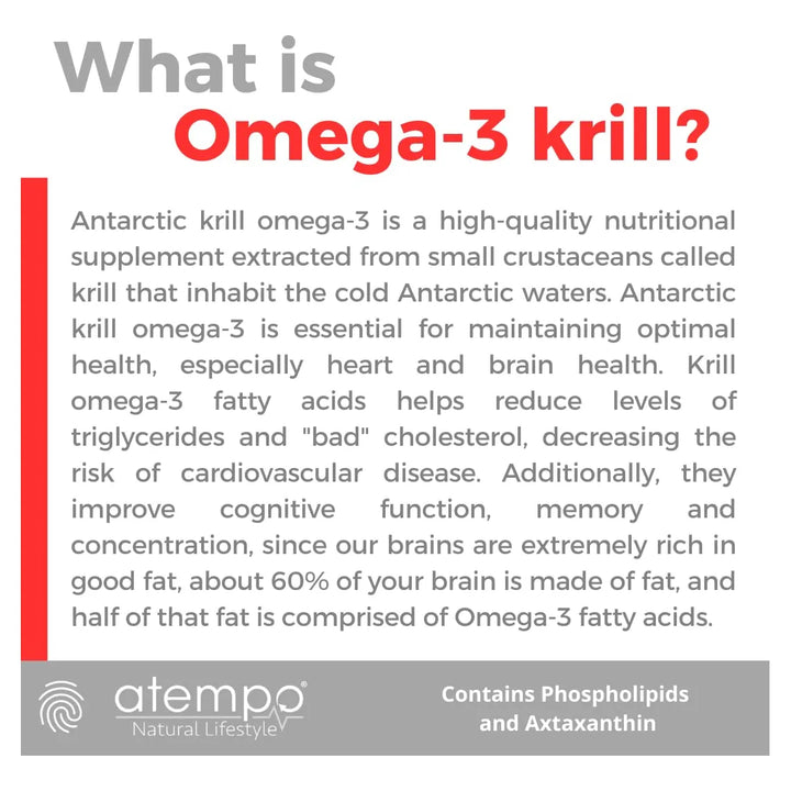 Imagina despertar cada día con energía, claridad mental y la tranquilidad de saber que tu corazón está protegido. El Aceite de Krill Antártico 1000 mg no es solo un suplemento, es una inversión en tu bienestar. Con una fórmula rica en Omega 3 EPA y DHA, más astaxantina natural, este producto está diseñado para transformar tu salud desde adentro.