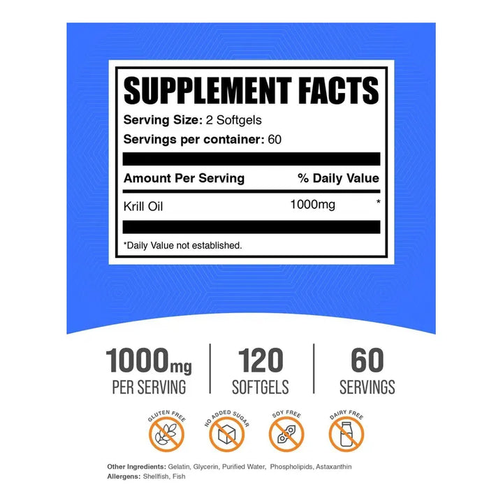 Aceite De Krill Antártico 1000 Mg Omega 3 Dha Cápsulas Blandas BulkSupplements