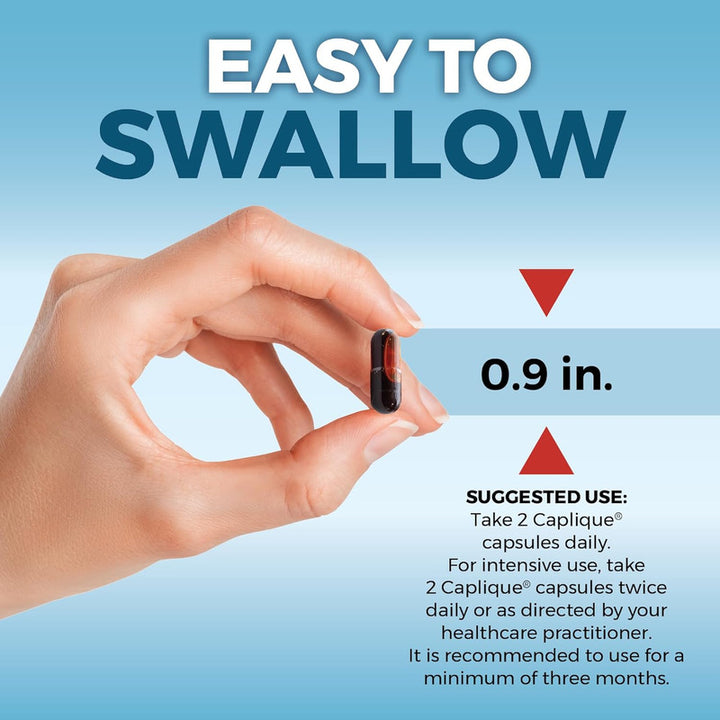 - Abre el recipiente y toma cuidadosamente 2 cápsulas de Caplique al día.