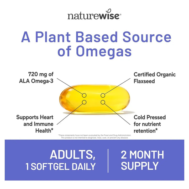 Aceite De Linaza Orgánico NatureWise 1200 Mg Omega 3 6 9 Sin Pescado