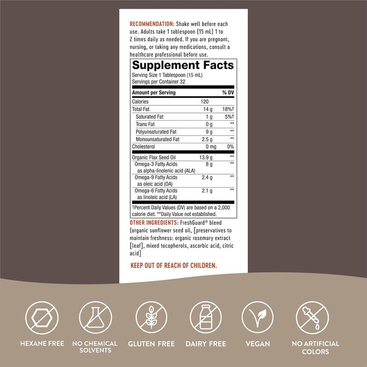 Aceite De Lino Organico 473ml Premium Sin Aditivos Omega 3 Saludable