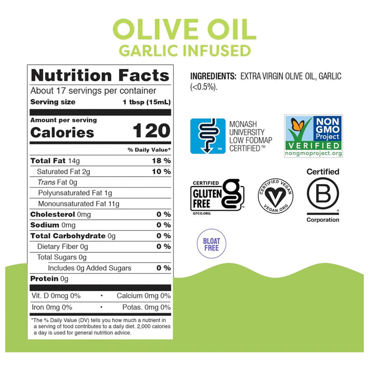 Aceite De Oliva Virgen Extra Italiano Con Ajo Bajo FODMAP Certificado Monash