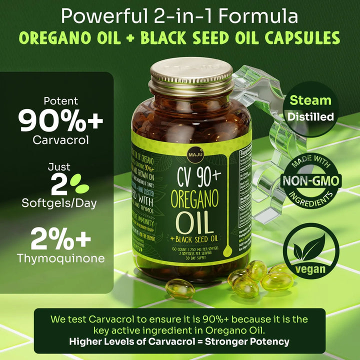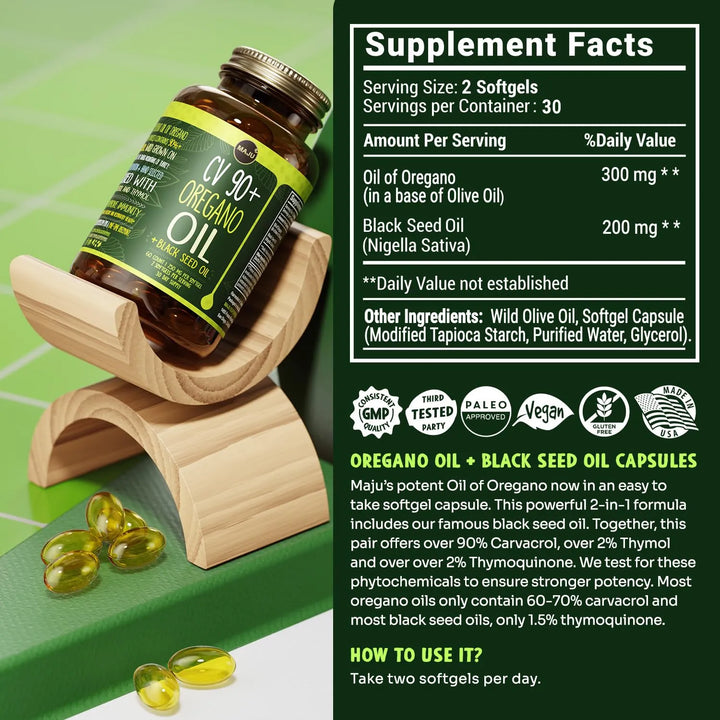 Aceite De Orégano Y Semilla Negra En Cápsulas Fórmula 2 En 1 Con 90 Carvacrol