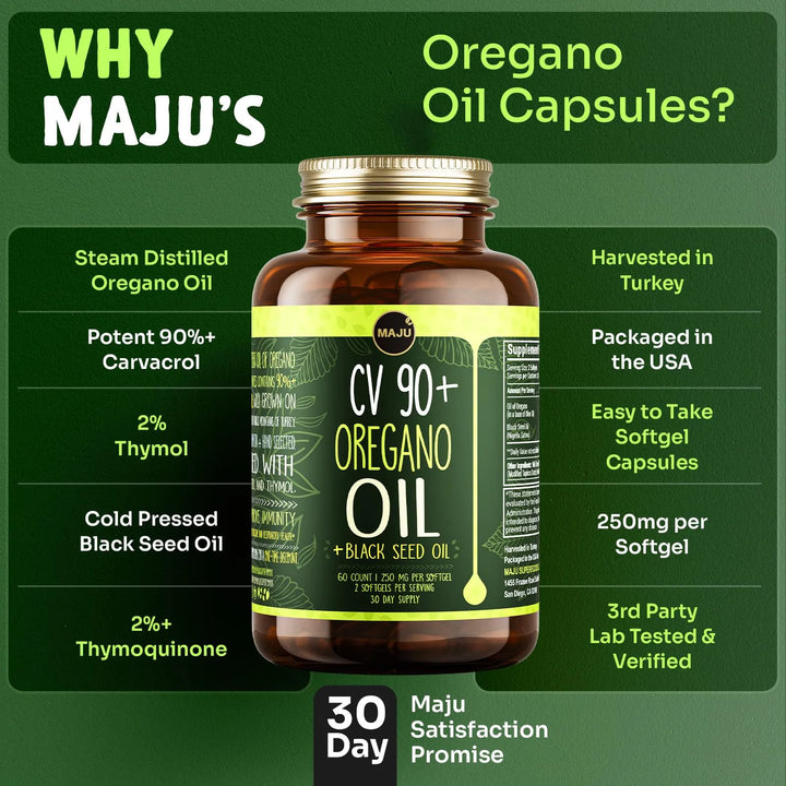 Cada cápsula está diseñada para ofrecerte lo mejor de ambos mundos: 300 mg de aceite de orégano silvestre y 200 mg de aceite de semilla negra prensado en frío. Nuestro producto es verificado por laboratorio, garantizando una pureza y potencia superiores a cualquier otra opción en el mercado. No dejes que otra temporada de resfriados te tome por sorpresa; actúa ahora y protege tu salud con lo mejor que la naturaleza tiene para ofrecer.