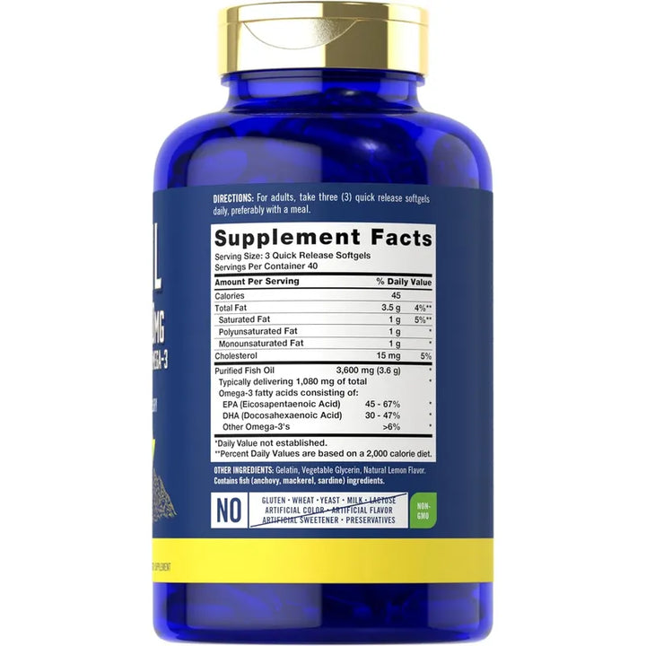 Aceite De Pescado Con 1080 Mg Omega 3 3600 Mg 120 Cápsulas