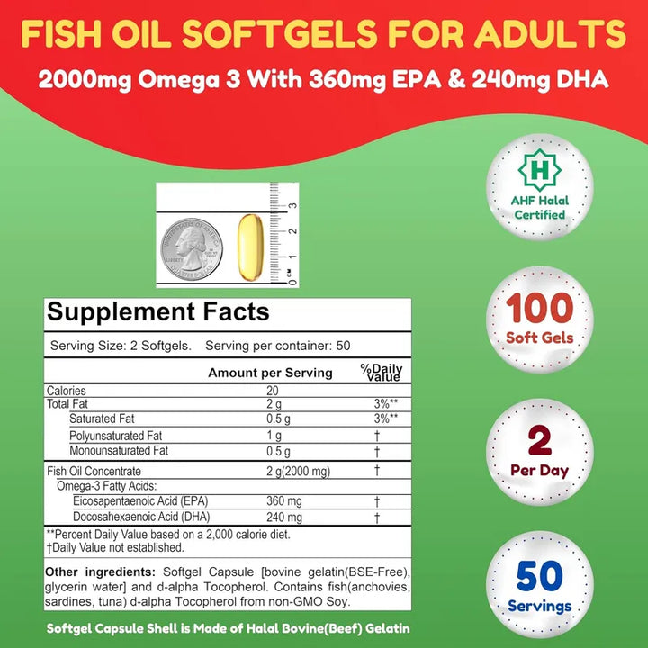 Aceite De Pescado Halal 2000 Mg Omega 3 Para La Salud Del Corazón