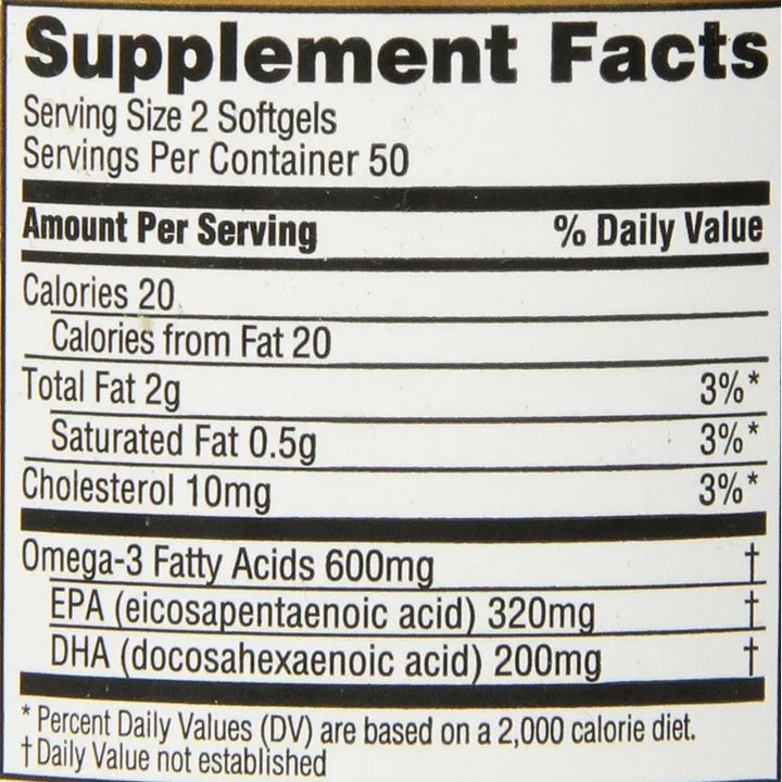 Con 1000 mg de Omega-3 puro, cada una de las 100 cápsulas blandas están llenas de EPA y DHA, componentes cruciales para tu cerebro, visión y corazón. Estas cápsulas blandas son fáciles de tragar, lo cual aumenta la comodidad, haciendo más sencilla tu rutina de bienestar diaria.