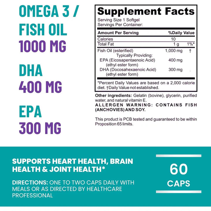 Imagina una vida donde cada día puedes apoyar la salud de tu corazón, cerebro y ojos con solo una cápsula. Así es, el Aceite de Pescado Omega-3 de Fuerza Extra te proporciona los nutrientes que tu cuerpo necesita para funcionar al máximo. La excelente combinación de EPA y DHA premium convierte a este suplemento en una solución poderosa para quienes buscan calidad y eficacia.