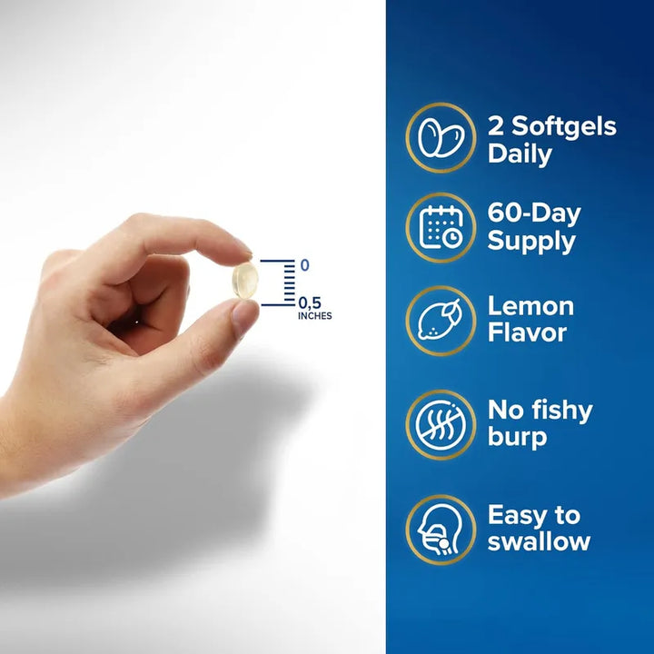 - Consumo diario: Toma dos cápsulas blandas con un vaso de agua.