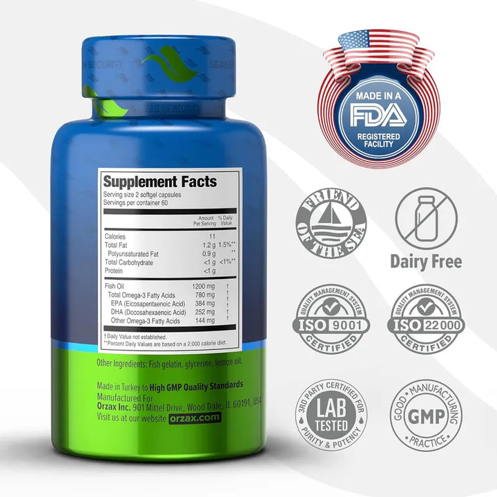 Aceite De Pescado Omega 3 1200 Mg Orzax Suplemento Epa Dha