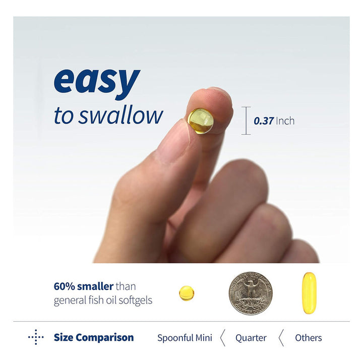 ¿Cansado de encontrar suplementos de aceite de pescado que son difíciles de tragar? ¡Las cápsulas blandas y pequeñas de Spoonful son la respuesta! Diseñadas pensando en tu comodidad, son ideales para personas mayores y aquellas que prefieren no lidiar con tabletas grandes. Además, están formuladas siguiendo los más altos estándares internacionales de pureza y frescura, gracias a nuestra certificación iFOS.