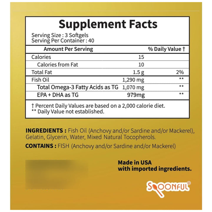 Bienvenido a un cambio en tu salud que marcará la diferencia. El Aceite de Pescado Omega 3 de Spoonful es la solución para aquellos que desean mantener una vida activa y saludable. Con su fórmula de alta potencia y tamaño reducido, es fácil de consumir sin sacrificar los beneficios cruciales que esperas del Omega 3.