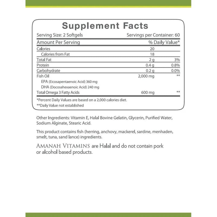Aceite De Pescado Omega 3 2000 Mg 120 Cápsulas Halal Suplemento Beneficioso