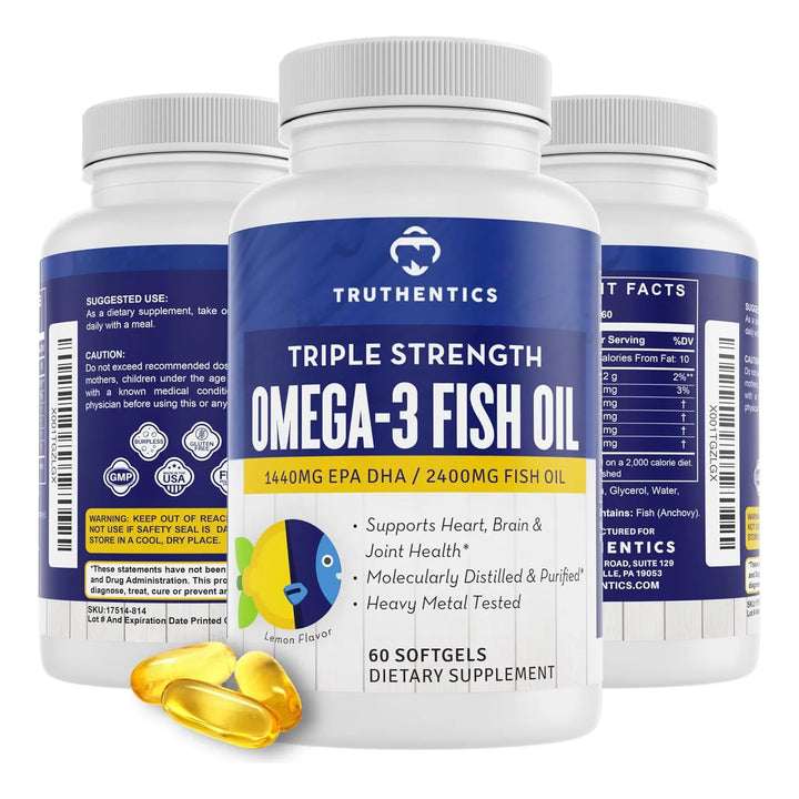 Imagina un suplemento que no solo cuida de tu corazón, sino que también protege tu cerebro, mejora tu visión y fortalece tus articulaciones. El Aceite de Pescado Omega 3 de 2400 mg con alto EPA y DHA está diseñado para ofrecerte todos estos beneficios y más, en una sola cápsula. Con una fórmula de triple fuerza, este suplemento es tu aliado perfecto para una vida más saludable y activa.