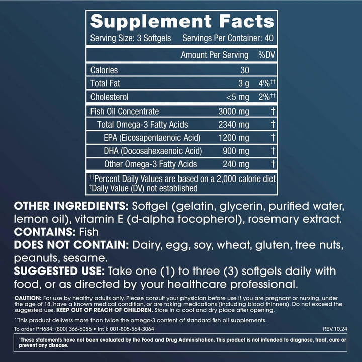 Aceite De Pescado Omega 3 EPA DHA Triple Probado 120 Cápsulas Sostenible