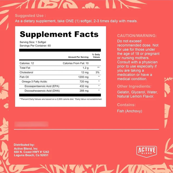¡Despierta tu interés! Nuestros geles blandos te ofrecen 1250 mg de aceite de pescado puro capturado en la naturaleza, sin el molesto regusto a pescado. ¿Te imaginas un suplemento tan puro y efectivo? Con 1040 mg de Omegas, incluyendo 690 mg de EPA y 260 mg de DHA, experimenta la verdadera diferencia en la absorción gracias a las fórmulas avanzadas en triglicéridos.