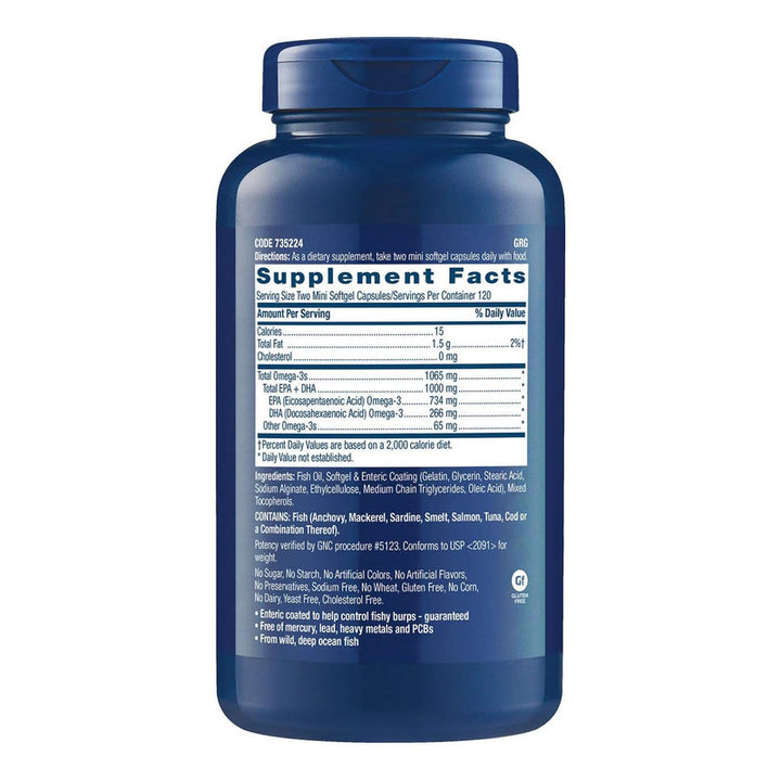 - Disfruta de un abastecimiento de 240 mini cápsulas diseñadas para minimizar el sabor del pescado.