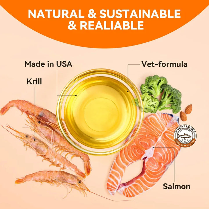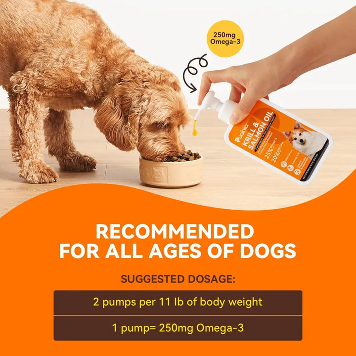 Transforma la vida de tu mascota con nuestro Aceite de Pescado para Perros con Aceite de Krill y Salmón. Imagínate a tu perro disfrutando de un pelaje más suave y brillante, dejando atrás los problemas de picazón. Bienvenido a un mundo donde cada comida se convierte en un momento de bienestar total.