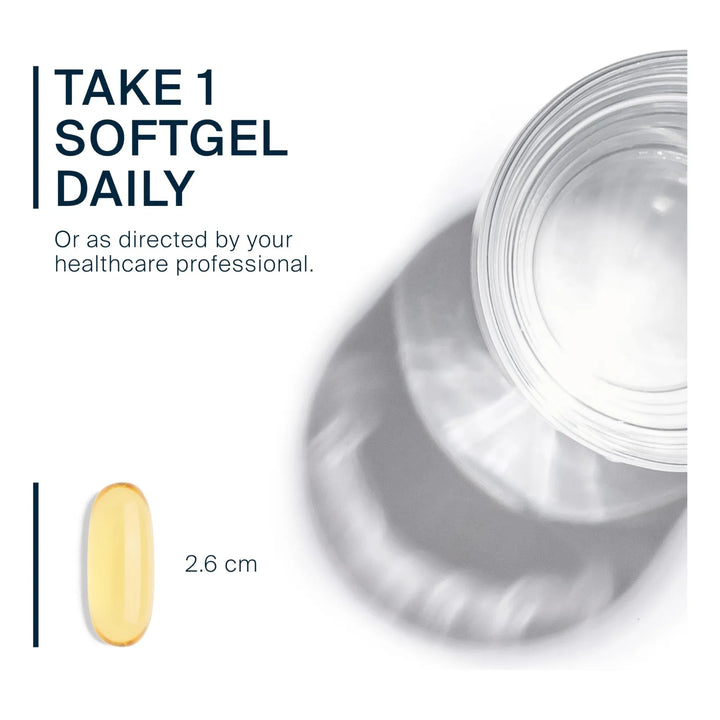 - Toma una cápsula blanda al día, preferiblemente con una comida.