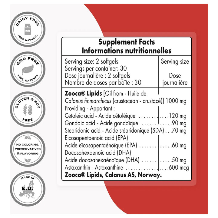 - Ingrediente patentado: Calanus finmarchicus, una especie única del Atlántico Norte. 🌊