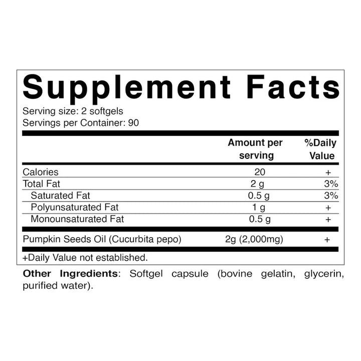 Nuestro aceite de semilla de calabaza utiliza su concentración única de ácidos grasos y fitoesteroles para apoyar tus sistemas corporalmente fundamentales. Omega-3 y Omega-6 combinados ayudan a reducir la inflamación y mejorar las funciones cardiovasculares y cognitivas. Además, los fitoesteroles juegan un papel crucial en el mantenimiento saludable de tu próstata y vejiga.