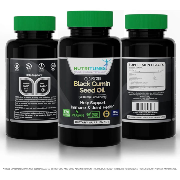 Aceite De Semilla De Comino Negro 1000 Mg Prensado En Frio Suplemento Vegano Para Salud Inmune Y Digestiva