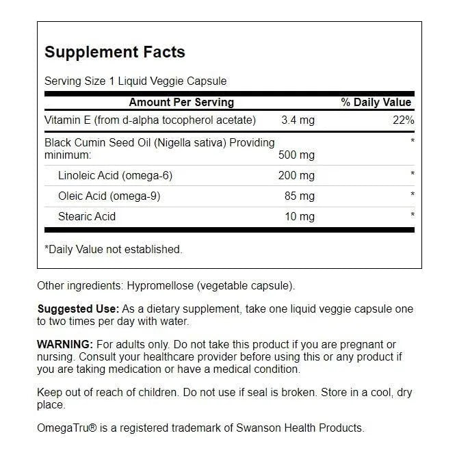 Aceite De Semilla De Comino Negro 500mg 60 Capsulas Veganas Para Salud Optima