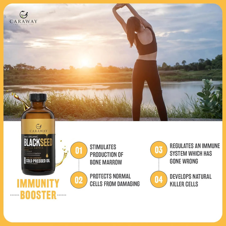 Aceite De Semilla De Comino Negro Prensado En Frio CARAWAY 8 Oz Refuerza Inmunidad Y Cabello
