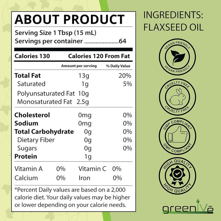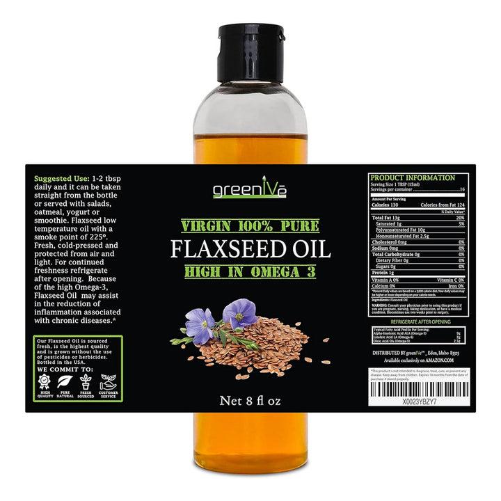 Aceite De Semilla De Lino Orgánico Puro GreenIVe Prensado En Frío Cultivado Orgánicamente