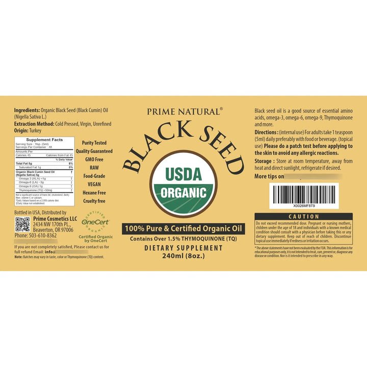Aceite De Semilla Negra Orgánico 237ml Alto En Timo Prensado En Frío USDA