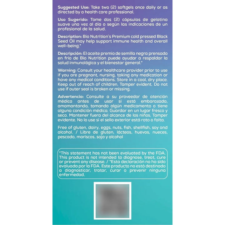 Imagina un producto que no solo cuida de tu salud, sino que también te ayuda a ahorrar tiempo y dinero. El Aceite De Semilla Negra Premium en cápsulas blandas es justo lo que necesitas. Con su proceso de prensado en frío, garantizamos que cada cápsula conserve todos los nutrientes esenciales para tu bienestar. ¿Te preocupa la calidad? Este suplemento está libre de gluten, lácteos, huevos, nueces, pescado, mariscos, soja y alcohol, haciéndolo perfecto para cualquier estilo de vida.