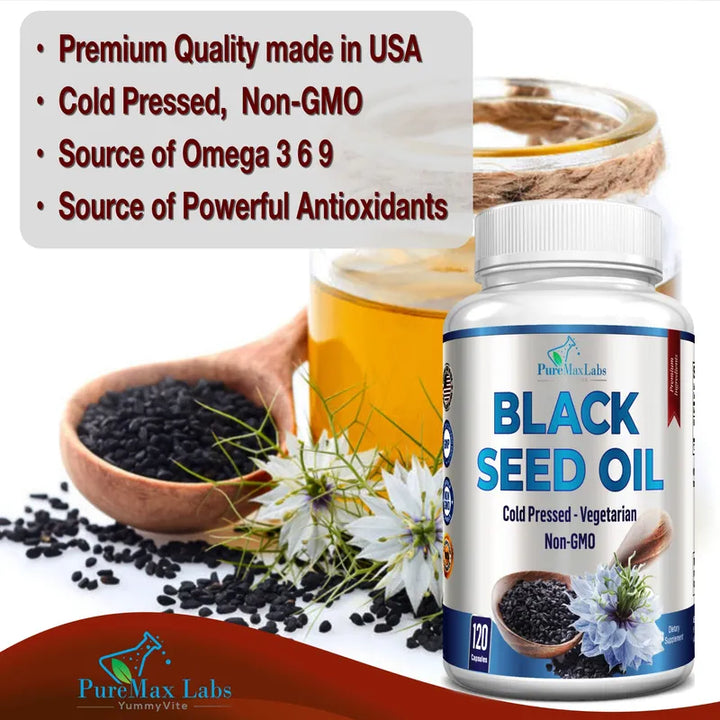- Contiene 120 cápsulas de aceite de semilla negra prensado en frío para máxima pureza. 💧