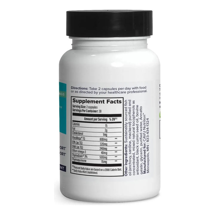¿Te preocupa tu salud cardiovascular? Este suplemento está clínicamente diseñado para promover la función cardíaca y el rendimiento cognitivo. Los ácidos grasos omega-3 del aceite de pescado Vivo Mega son conocidos por sus beneficios para el corazón y el cerebro, mientras que la timoquinona estandarizada al 3% actúa como un antioxidante potente, protegiendo tus células del estrés oxidativo. No se trata solo de sentirte bien hoy, sino de invertir en un futuro más saludable.