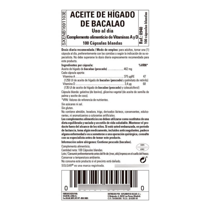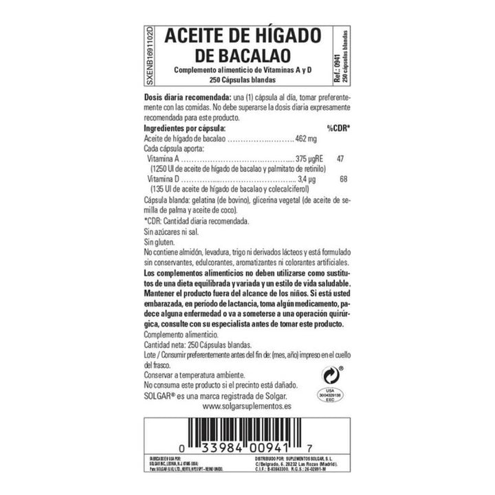 Nuestro producto no es solo un suplemento más; es un compromiso con tu salud. Las cápsulas de Aceite de Hígado de Bacalao están perfectamente dosificadas para brindarte la nutrición que necesitas. Son ideales para aquellos que desean mejorar su dieta con ácidos grasos omega-3 esenciales. Cada cápsula es una promesa de pureza y calidad, libre de azúcar, sal y almidones añadidos.