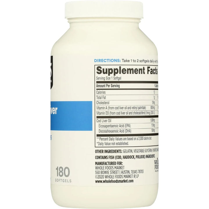 Aceite Higado Bacalao Noruego 1000 Mg 180 Capsulas Blandas Whole Foods Market
