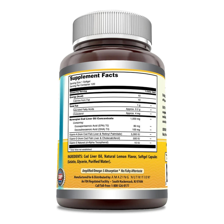 - 1000 mg de puro aceite de hígado de bacalao noruego 🏆: Obtenido de las aguas más limpias y frías para garantizar máxima pureza y potencia.