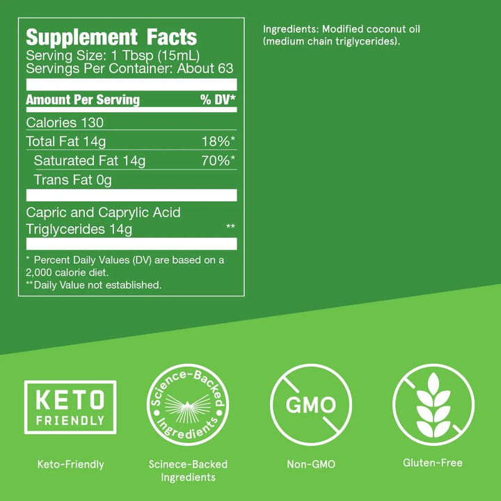 Aceite MCT C8 C10 946ml Energía Instantánea Enfoque Mental Dieta Cetogénica