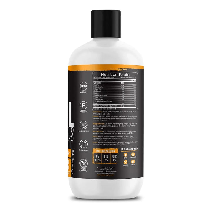 Aceite Mct C8 Orgánico Para Dietas Keto Y Veganas Energía Cerebral Instantánea