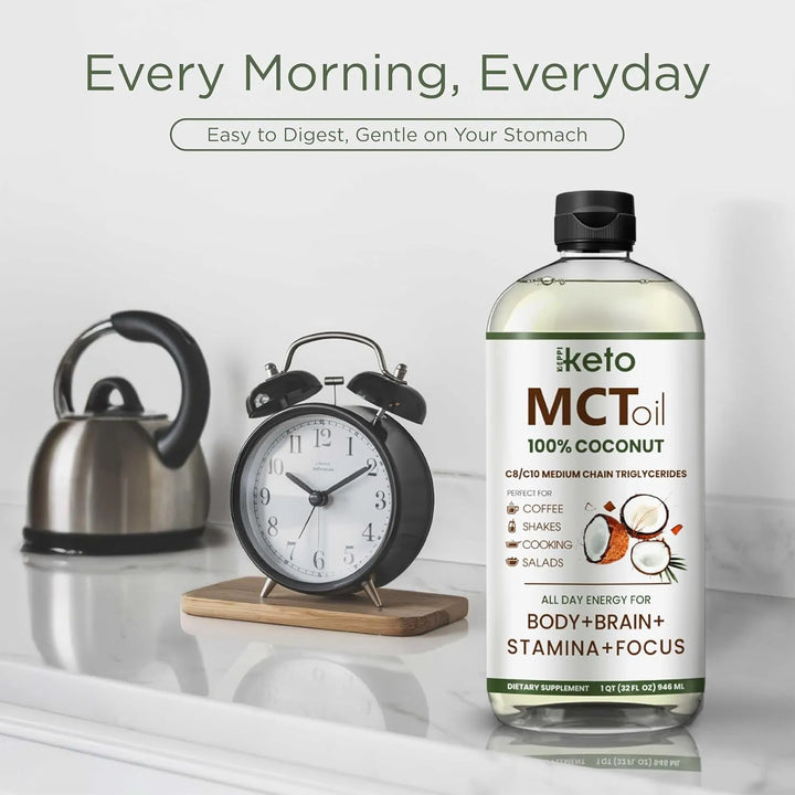 Imagina empezar tu día con un café cargado de grasas buenas que te dan energía duradera sin esos molestos bajones de azúcar. Nuestro aceite MCT se mezcla suavemente en tus bebidas y comidas, desde batidos hasta aderezos, sin alterar su sabor. Con una cucharada, estarás dando a tu cuerpo el combustible premium que necesita para funcionar al máximo.